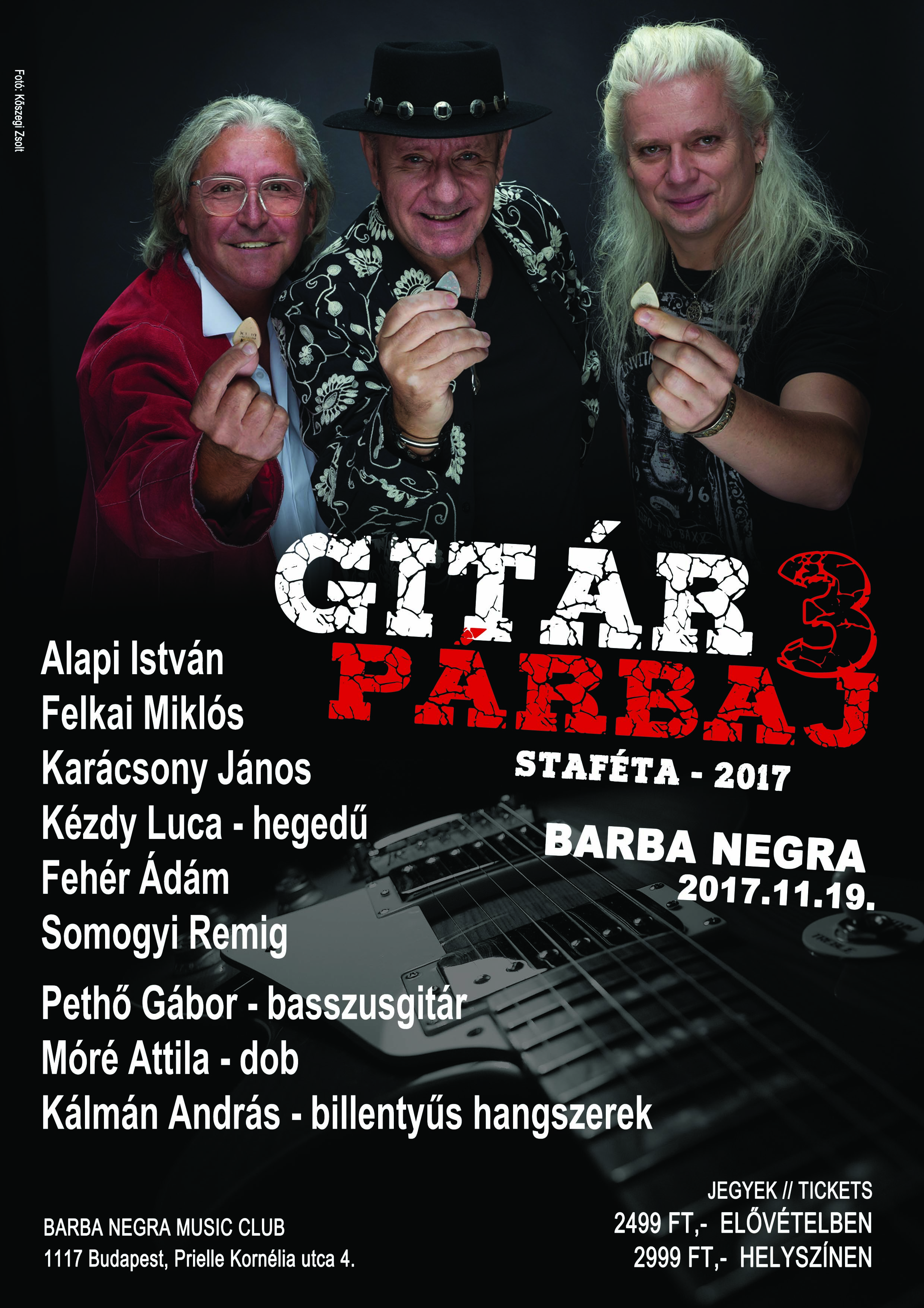 2017-ben létrejött a III. GITÁRPÁRBAJ. A Barba Negra Music Klubban nagyon jól sikerült a koncert, CD és DVD is készül belőle, 2018 őszén már kézbe vehetted!